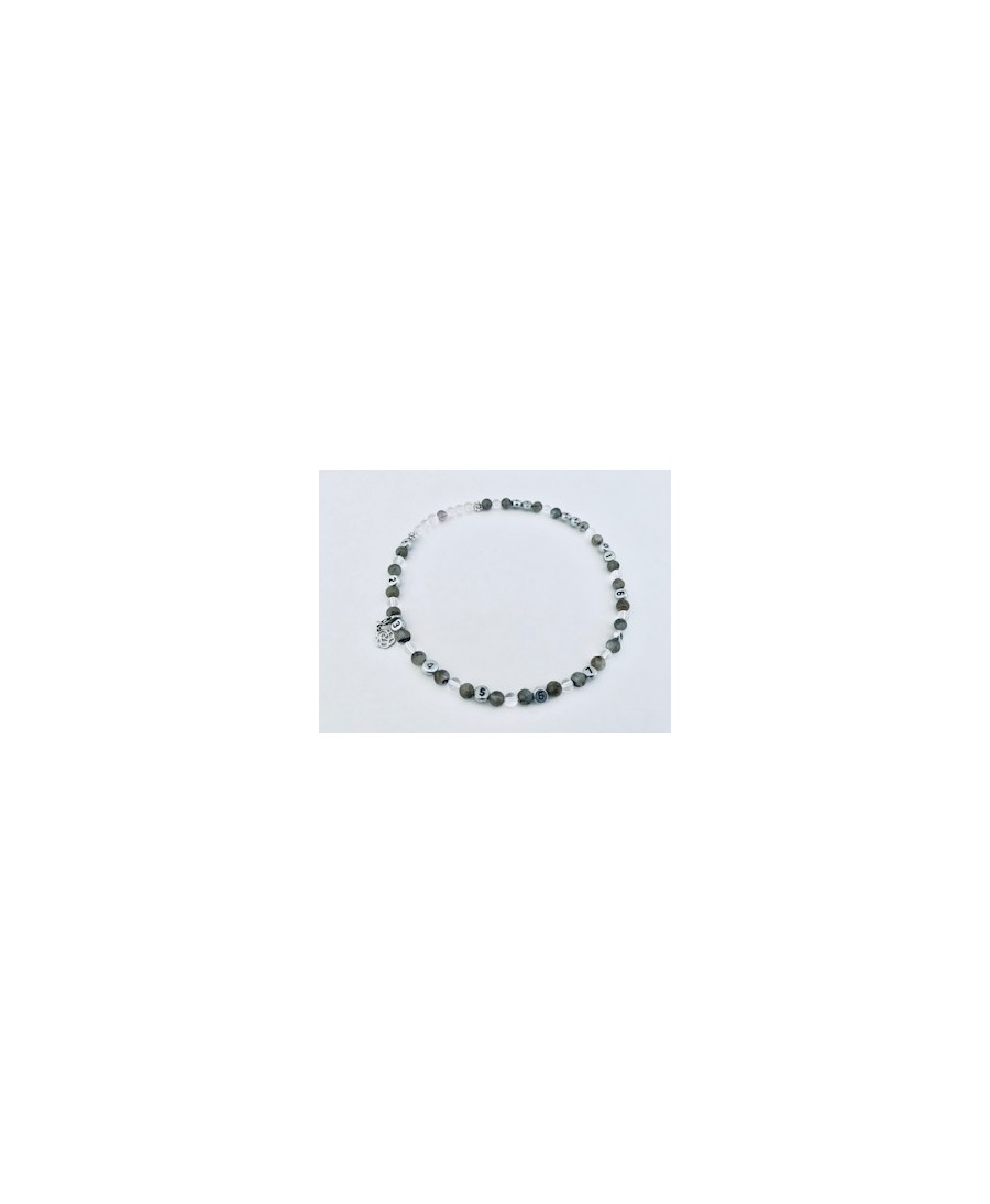 Ce bracelet fonctionne comme une horloge, avec des perles numérotées de 1 à 12 qui marquent les heures, et entre chaque perle numérotée, 3 perles représentent les ¼ d’heure.