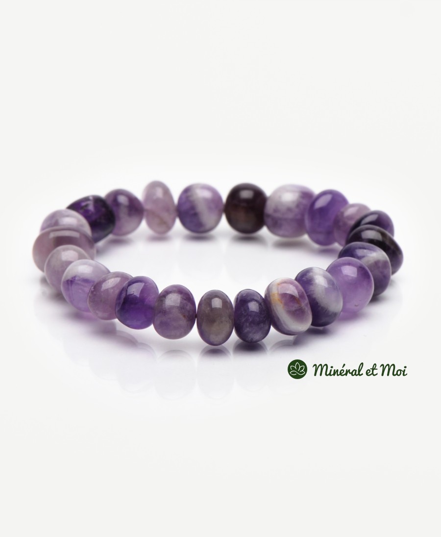 L'Améthyste apaiserait des angoisse et la colère, ce qui en fait une alliée indispensable au quotidien. Elle dissipe la peur, l'anxiété et allège la tristesse et le chagrin. Elle rééquilibre le mental et combat les obsessions.