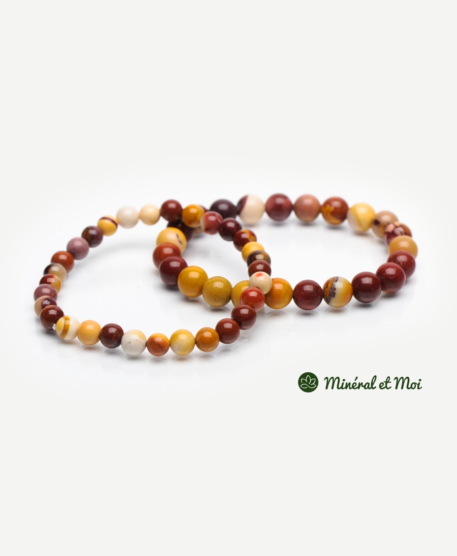 Les Jaspes, proches des Agates, sont utilisés en fonctions de leurs couleurs. Ce bracelet très coloré est indiqué pour l'ancrage et l'organisation de la pensée. IL  apporte équilibre et stabilité de notre "Moi intérieur".